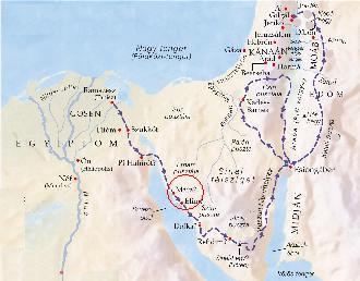És elindulának Élimből és érkezék Izráel fiainak egész gyülekezete a Szin pusztájába, mely Élim között és Sinai között van, a második hónapnak tizenötödik napján, Égyiptom földéről való kijövetelök után.